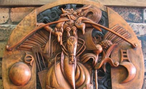 东巴木雕产生于云南纳西族所独有的特色而丰富的东巴文化。在纳西艺术中,最具魅力的还是木雕。东巴木雕主要以杜鹃木为材料,这是一种乔木,雕刻家们在这种木头上,用线刻、浮雕、立体雕的手法,雕出圆形、方形、立体的图案。