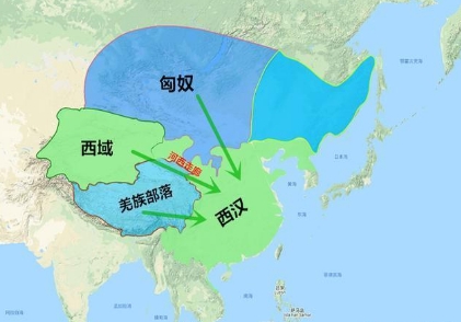 匈奴人占领河西走廊,往西可以控制西域三十六国,往南又能与西羌部族结成抗汉联盟。