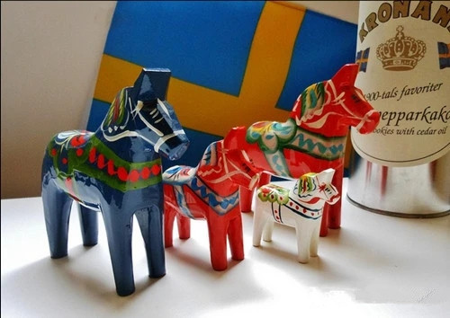 达拉木马(英文名称:Dala horse、Dalecarlian Horse):公元17世纪前后,在原始森林密布的瑞典中部达拉纳省地区,人们大多以伐木为生。工人们一旦进入原始森林,常常是十天半个月,最多甚至要待半年时间。伐木工人思念孩子,就有人想到用木头刻一些小玩具,回家时可作为给孩子的礼物。被誉为“瑞典的象征”,是当地人馈赠外宾的常备礼品,也是各国游客选购的热门纪念品。