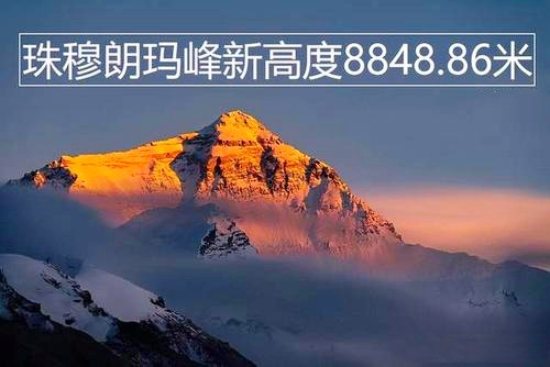 珠穆朗玛峰的高度,尼泊尔等国采用的雪盖高(总高)是8848米,与中国测绘工作者1975年的珠峰测量值一致;中国采用的是2005年中国国家测绘局测量的岩面高(裸高即地质高度)为8844.43米。