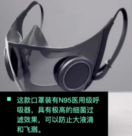 材质方面,该口罩使用具有防水、防刮的特性的可回收塑料材质,可极大的减少一次性口罩造成的浪费。
