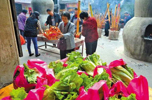 生菜会期与送子观音诞偶合,封建社会重男轻女,以生子为“生财”,生女为“破财”。所以生菜会实则是人们祈求添丁发财的庙会。1937年出版的《歌谣》(第2卷第37期)周刊上还有一段一记载:“生菜会,郊野各乡丰J一都得举行,大家都在郊外席地大吃生菜,非常热闹。唱八音,演戏的亦有,据说这样做了,年成必好,故盛装的男女也纷纷去参加、)”