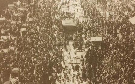 再加上这次葬礼的排场也非常的大,搞了一个白鹤舞,白鹤舞由数百人表演,这白鹤用竹子做骨架,白绢做身子和翅膀,人拉动牵线,"白鹤"就翩翩起舞,象征死者的灵魂升天,这种场面,哪有人见过啊,就想之前的黑人抬棺,这样的场面,大家不也都挺爱看的!来看热闹的吃瓜群众越聚集越多,最后一共来了有上万人。当时的场面,就像图上这样!