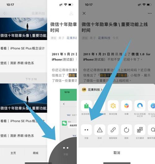 首次添加浮窗时会出现指引提示,可以将微信公众号文章、微信内打开的网页、文件添加到浮窗。