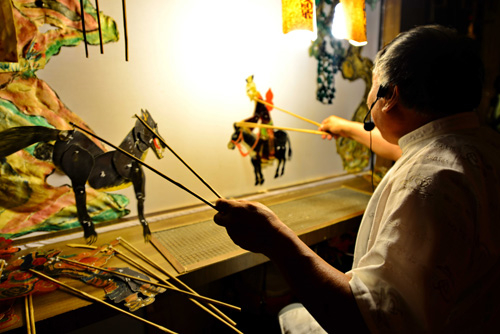 它的表演者在幕后操纵剪影、演唱,或配以音乐。在过去电影、电视等等媒体尚未发达的年代,皮影戏曾是十分受欢迎的民间娱乐活动之一。