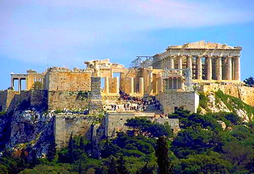 传说雅典人为了将胜利女神永远留在他们那边,塑了没有翼的女神像,从那时起,胜利女神在希腊艺术中总是同雅典娜在一起的,她被称为ATHENA NIKE。神庙的位置很引人注目,因为传说就是在这里,绝望的雅典王爱琴从此处纵身跳入了大海。
