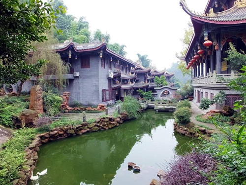 中国道教发祥地之一的西派祖庭--四川乐山紫霞宫,风景秀美,山环水抱,为龟穴莲花之风水宝地。此地:“北有青山靠、南有丙水照,东有青龙拥、西有白虎到”。