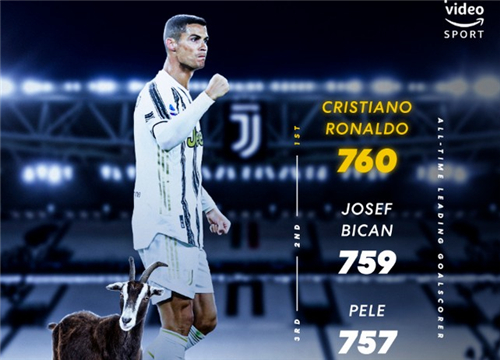 C罗发挥出色,打入了打破僵局的一球,而这个进球也是其职业生涯760球,也超越了比坎759球的纪录,成为世界足坛历史射手榜第一。