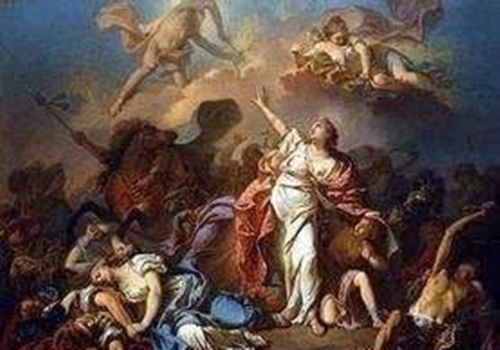雅典的国王厄瑞克透斯有一个漂亮的女儿,名叫克瑞乌萨。她事先没有征得国王同意便成了太阳神阿波罗的新妇,并为他生了一个儿子。由于害怕父亲生气,她把孩子藏在一只箱子里,放在她跟太阳神幽会的山洞里。她虔诚地希望众神会可怜这个被遗弃的儿子。为了使儿子身上有个辨认的标记,她把自己当姑娘时佩戴的首饰挂在孩子的身上。儿子出世的事自然瞒不过阿波罗。