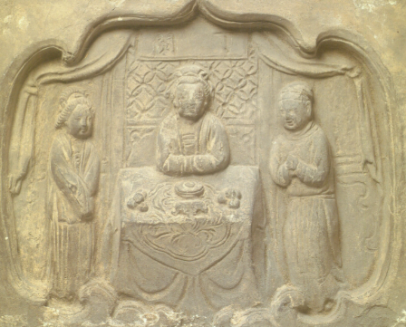 丁兰的孝行获得官方认可,汉宣帝曾诏令将其事迹绘于云台阁,成为儒家伦理教化的典范。北宋画像砖《丁兰事木母》中,老妇端坐菱格纹座椅,左右侍者拱立,展现汉代"事死如事生"的丧葬观念。这种文化符号在元代《全相二十四孝诗选》中被进一步简化,弱化丁兰早年过失,强化其悔悟尽孝的道德楷模形象。
