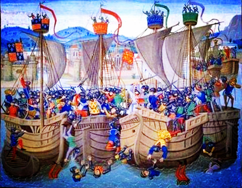 这场战役不是法国人第一次在海上遭遇长弓。1337年12月,法军坎桑德(Cadsand)岛守军,尽管有热那亚盟友的弩手相助,仍然覆灭在英军入侵舰队的长弓箭雨之下,可惜法国人很显然没有把幸存者的话听进耳朵里。