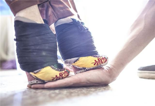 在古代,女子以小脚为美,“三寸金莲”就是用来形容女子小脚的,“三寸金莲”也叫缠足,古代女子用布将双脚紧紧缠裹,使其脚畸形变小,以为美观。