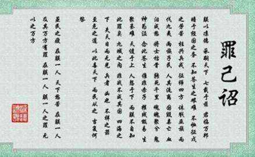 “罪己诏”,作为中国古代帝王对灾难和过错的反省、自检,有它的积极作用,一来表达了他们为了国家和人民,愿意把事情办好的愿望;二来笼络人心,造成一个团结一心的局面。这就是“罪己诏”的行为和功用。