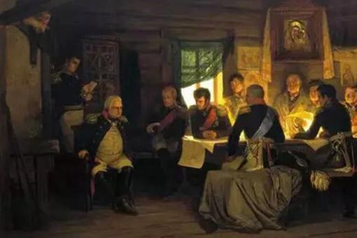 1805年,沙皇任命库图佐夫为俄军元帅,领兵去与拿破仑对抗。可是当时拿破仑刚在乌尔姆一战中重创了奥军,此时法军兵锋正利、气势正盛,不宜与之作战。于是,下令俄国军队撤出战斗。可是,沙皇和奥皇都认为库图佐夫这么做实在是太胆小了,大丈夫就应该面对面的与法军硬拼。沙皇和奥皇开始架空库图佐夫的领导权,由这两个皇帝直接指挥。