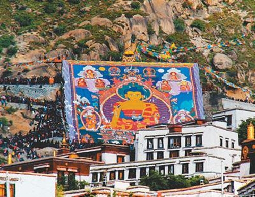 哲蚌寺是拉萨市乃至全藏规模最大的寺庙,其珍贵藏品数量也是相当惊人的。著名的有历代瓷器:寺内所藏甚多,年代有早至宋代者,而以明清特别是清代为最多,种类多属压口杯、小碗之类。各类唐卡:有数百幅,多为明清时代的作品,措钦大殿挂有四幅一组以文房四宝为内容的唐卡,清雅丰富,其中有一套经拆装、推封册页的朱印“大藏经”,共108幅,装在54个特制木箱中,印刷颇工,装帧富丽,夹板精致,至为珍贵。