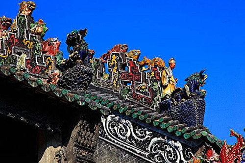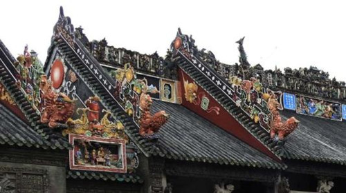 明清时期,祠堂、寺观和豪门大宅建筑盛行用灰塑做装饰。灰塑有一整套独特的工艺技法,它以石灰为主要材料,具有耐酸、耐碱、耐温的优点,非常适合广州一带的湿热气候条件。此外,灰塑不需烧制,可现场施工,具有因地制宜、因材施艺的灵活性和便利性。