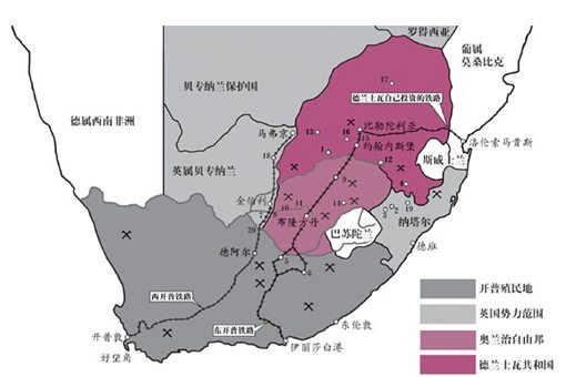 英国于1899年挑起英布战争(1899-1902),在杀敌一千,自损八百的情况下,吞并了德兰士瓦和奥兰治两个共和国。