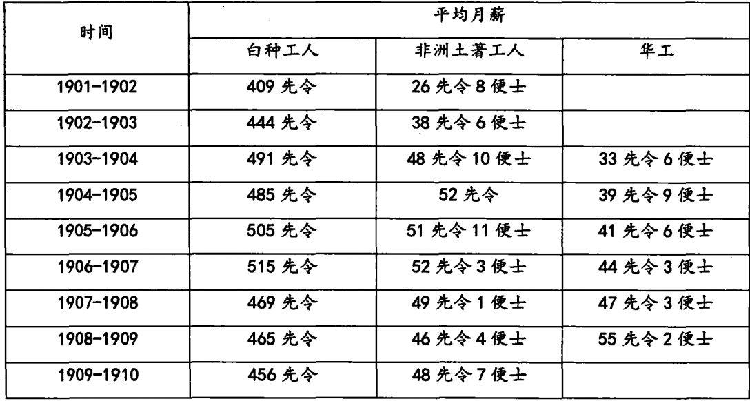 德兰士瓦各色雇员工资表,摘录自李安山《非洲华侨华人史》