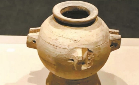考古专家们发现文物的地点,正是当地村民的家中。当村民将文物拿出之后,几乎所有的考古专家们都感到一惊,因为向来见多识广的他们,居然不知道村民手中的文物究竟是何种器物。从外表上来看,该器物高16.3厘米、口径7厘米、底径10.4厘米。整体为泥质灰陶、胎质较厚且小口外侈,呈圆唇、短领、束颈、球形圆腹状,并具有喇叭状高圈足。此器物上部有小口、下方无底,为贯通结构,器身腹部位置,安装有四对扁方形器耳,器耳双双相对为一组,且各组之间存在长方形凹槽,横向贯通有一排穿孔。