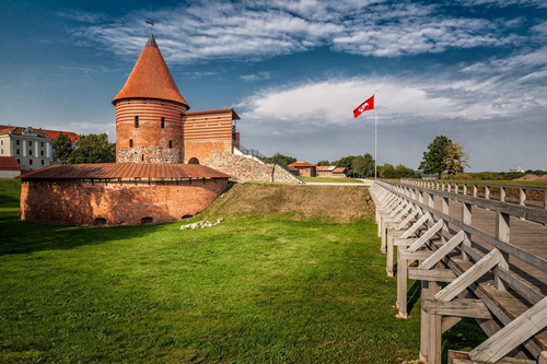 建于13世纪,是立陶宛最早的防御工事,而且是立全境内惟一的有双层墙保护的要塞,初建时墙体厚2米,高13米。1362年十字军入侵考纳斯,连续围攻城堡3个星期,终于突破防守,并毁掉了城墙。1368年城堡重建,结构更为坚固。城堡原有4个堡垒,但历史上涅里斯河泛滥,将其冲毁,并导致其北部的城墙崩溃。