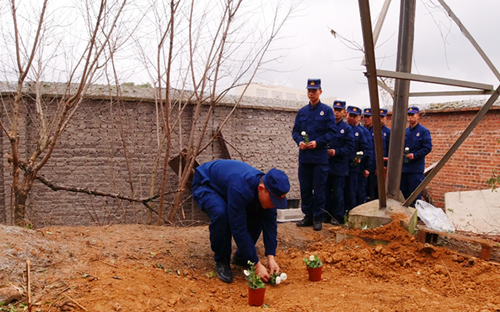 1月10日上午,功勋犬泰森遗体告别仪式在毕节市消防救援支队碧阳大道特勤站举行。在告别现场,特勤站全体指战员集体默哀,并为逝去的泰森献花,送上了最后一个庄严的敬礼。
