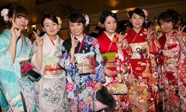 (图为:日本女人穿和服)