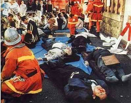 1995年3月20日早班高峰期,麻原彰晃主谋策划东京地铁沙林毒气事件,在东京3条地铁线的五班列车上,扎破了数个装有“沙林”毒气的塑料袋,造成12人死亡及5510人以上受伤,麻原彰晃遭到逮捕,2004年2月27日被东京地方法院一审判处死刑,曾试图上诉,但日本最高法院于2006年9月15日判定麻原彰晃维持死刑,全案定谳不得上诉。2018年7月6日被执行死刑,9日已在东京都内火化。