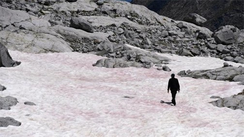 雪地出现“血雪”的情况,其实也不是很罕见,毕竟随着夏季的到来,很多雪地也会出现融化,所以也可能会出现类似的“血雪”。来自意大利的科学家发现阿尔卑斯山也出现了“血雪”。当然,这些出现在阿尔卑斯山的“血雪”,和南极地区的“血雪”情况是相似的,都是一些藻类生长引起的。研究人员比亚焦·迪·表示,出现在阿尔卑斯山的粉红色积雪可能是由在格陵兰岛上发现的一种名为“Ancylonema nordenskioeldii”的藻类引起的。这些藻类的出现,是一种自然现象,对于中纬度的雪地地区来说,在春夏季可能会出现这样的情况,所以“血雪”的出现,也算是比较正常的。