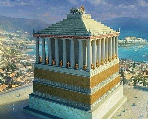 这座由皮蒂德和萨蒂罗两位建筑师设计完成的建筑,是用帕罗斯岛的白色大理石建成的,高42米,相当于一座14层的楼房。陵墓内部非常精美的装饰、雕塑和众多的雕像,为这座宏伟的建筑物增添了不少光彩,史学家们认为这些杰作是出自当时一些著名的艺术家之手,如斯科巴斯、利俄卡利斯、提摩西阿斯等人。在其中的三处浮雕装饰中,第一处表现的是马车,第二处是希腊人和亚马逊人在作战,第三处是拉皮提人和半人半马的怪物之间的争斗。
