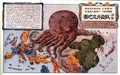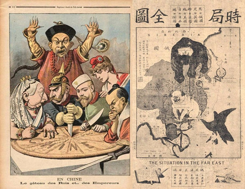 ”这幅图在时局危急面前,再一次形象地揭露了帝国主义列强在甲午战争后对中国的瓜分态势,尤其是俄国对中国领土的侵吞,以唤醒国人。
