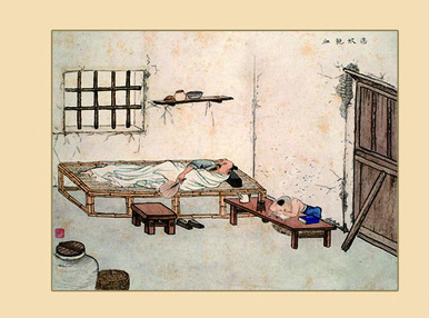 吴猛出生于晋代豫章分宁(今江西修水县),自幼丧母,与父亲相依为命。家境贫寒的他们连蚊帐都无力购置,每到夏夜,蚊虫肆虐,父亲常因被叮咬而难以安眠。年仅八岁的吴猛,目睹父亲劳作后的疲惫,心中涌起无尽的疼惜。他想到一个“笨拙”却饱含深情的办法:赤裸上身坐在父亲床前,任由蚊虫叮咬自己。他天真地认为,蚊子吸饱了自己的血,便不会再去打扰父亲。这个看似幼稚的举动,实则是孩子对父母最纯粹的爱——他甘愿承受皮肉之苦,只为换取父亲一夜安眠。