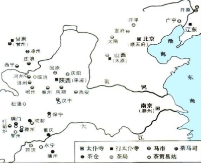 茶马贸易中的茶,主要是川陕官茶。官茶,也就是官府从地方上征收或收购的茶叶。而茶马贸易中的马匹的来源,则是大致是今天的新疆、西藏和甘肃一带。那么茶和马是怎么交易的呢?首先,明朝政府在川陕产茶区设立茶课司和茶仓,茶课司负责从农户手中征收或收购茶叶,茶仓则用于储存茶叶。然后,将茶叶从茶仓运送至边境的茶马司。为了使得茶叶能够顺利地抵达茶马司,一般采用官府招募人员专人护送的方法。最后通过茶马司与少数民族交换马匹。茶马司,是管理茶马贸易的机构,设置在与少数民族交界的地方。为了管理方便,茶马贸易使用金牌勘合的方法。金牌勘合,就是交易双方各持一面金牌的上或下,交易时将上下号金牌放在一起,如果符合,即可交易。具体来说,明廷发放给少数民族各部落金牌,然后双方按照约定进行互市交易。