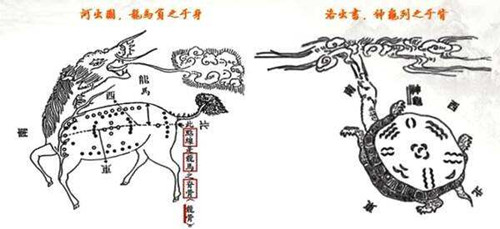河图、洛书最有名的出处来自于《易传·系辞》中的“河出图,洛出书,圣人则之”这句话,并据此认为八卦就是根据这二幅图推演而来的。第一次给这两幅图命名的是北宋易学家刘牧,他精研陈抟所传《龙图易》,著书《易数钩隐图》,于是,河图洛书才为世人所知。