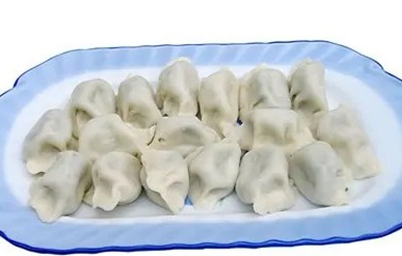 3、水烧开,下入水饺,中间点两次凉水烧开,水饺熟后捞出即成。