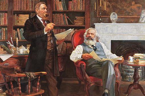 在流亡巴黎期间,马克思认识了弗里德里希·恩格斯。二人志同道合,一见如故。他们一起研究探讨,撰写了第一部合写著作《神圣家族》,从此开始了他们长期的亲密合作。马克思埋头做学问,勤于读书思考,日常生活却很大意、随性,不善理财经营,这直接导致了他的家庭常常陷于潦倒穷困之中。恩格斯是富家子弟,他经常出钱赞助马克思,并且帮助马克思代笔撰写部分文章,完成报刊的约稿工作。
