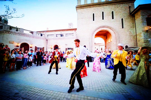 我们急速地旋转,姑娘们带着漂亮的舞伴,来到这里快乐地跳舞,在这星月交辉的夜晚。