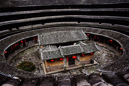 圆的外形与天穹呼应,本色的黄土墙与大地密接。随时光流近,土墙出现无数不规则裂缝,更显得苍劲有力。圆寨是那样地苦心经营,却宛自天然,震撼人心,在当今方兴未艾的土楼旅游热中,圆寨具有最强的吸引力。形走马楼系由方形楼演变而成。这种楼以2层楼为多数,一层为卧室、仓库。其有一个共同特点:在二楼的外部以木料架设一条外伸悬空的走廊。