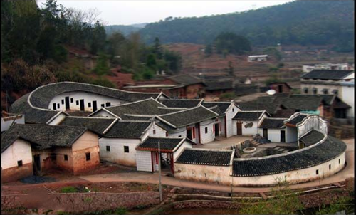 这种土楼是永定客家人在南迁过程吸收了南方土著“干栏”式民居的优点、创造性地运用中原先进的夯土技术构筑而成的,它能适应山区的复杂地形和多雨潮湿的气候,且简单易建、省工省料。还不一种是依山建造的一字形土楼,在楼正面及左右两侧筑起转墙,大门设于围墙一侧,全楼形似锁头,因而被称为“锁头楼”。