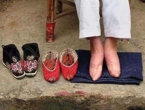 在当时如果女子一双天足或脚缠得不够小(超过了三寸),就会被人耻笑,并且嫁不出去。男性把把摧残人体、行动不便抛在一边,认为缠小的脚小巧玲珑,精致美观,能够赏心悦目,其实这已经是一种社会的病态了。