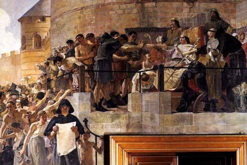 公元1356年,曾因黑死病肆虐而被迫休战十年的英法两国,为各自利益再度爆发战争。两国军队于9月份在普瓦捷(又译普瓦提埃)展开激烈对战,法国国王约翰二世不幸被黑太子爱德华俘虏,王储查理(即查理五世)迅速上台掌权。查理知道打仗等于烧钱,没有足够军费支撑的话,前线很快便会溃败,连他本人也会成为敌人的阶下囚。可是财富并不会凭空出现,查理为筹集巨额军饷和赎金,只好下令提高税收,将战争成本平摊到市民身上。巴黎市民接到这一命令后极度不满,他们为保护自身权益,主动联合起来,冲进王宫兴师问罪,然后将查理赶出巴黎。查理不甘受此屈辱,于是诏令全国农民前来巴黎镇压市民。