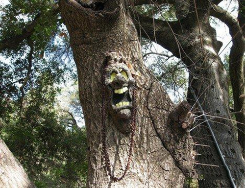 它已有4000多年的寿命。其中一棵下端已经腐烂,形成一个3米宽'5米高的大树洞,只要有女人走近离它七八米远之地,就会立刻被吸进去,任凭别人怎样拖也无计于事。一段时间后,被吸女人就会无影无踪,只剩下一些金银手饰,令人费解的是,这个树洞从来不吸男人,而另一棵树,相距几米远,只对布料感兴趣,衣服挂在树上两小时就会不见,政府派科学家研究非但没有有进展,连随同的女佣也被吸进去了。