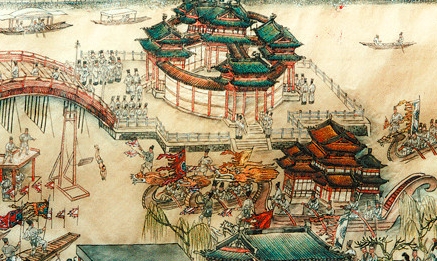 总之,经过北宋一代不断营建,金明池至北宋末期达到鼎盛,成为当时东京的一大胜景。宋人孟元老在《东京梦华录》中专用一卷对池的位置、大小、建筑布局及游池活动等方面进行详尽的描述。