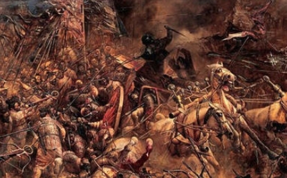 南宋王朝把杨么起义军看作心腹大患,非把他们镇压不肯罢休。宋高宗又派王?(音xiè)带兵六万进攻。王?不敢再用大船,改用小船进攻。起义军用车船迎战,车船高的有几丈,来往如飞。他们又在船身前后左右都装上了拍竿,拍竿上缚着一块块大石。官军的小船一接近,他们就摇动拍竿,发出大石,把敌船打沉。车船上还发出用硬木削尖的“木老鸦”,和弓箭一起发射,打得官军叫苦连天。
