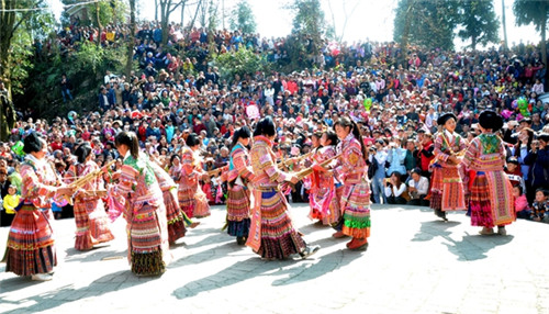 特别是未婚的青年男女,更是把自已打扮得大方得体,决意在场上展露风韵而选中如意的心上人。尤其是小伙子更是跃跃欲试,因为,他们除了在坡场上展露头角外,还有一关过硬的竞技决斗,那就是爬杆与跳高难度的芦笙舞。