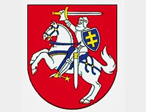 立陶宛国徽为盾徽。红色盾面上一位身着银装的骑士跨在一匹白色的骏马上,右手挥一把银剑,左手持蓝地镶金黄色双十字的盾牌。前苏联时期曾经使用的加盟共和国国徽。另有大国徽,盾外有独角兽和狮鹫守护,上有大公冠。下有三叉戟,并书以格言“让统一盛放”。