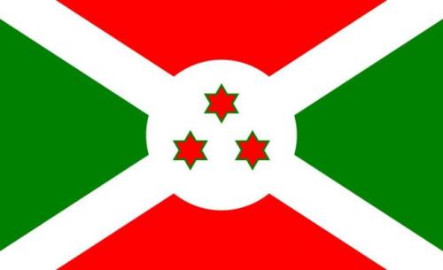 布隆迪国旗为长方形,长宽之比为5:3。两道交叉的白色宽条将旗面分成四个三角形,上下两个相等,为红色;左右两个相等,为绿色。旗面中央是白色圆地,内有三颗带绿边的红色六角星,呈品字形排列。红色象征为争取自由而斗争牺牲者的鲜血,绿色象征所期望的进步事业,白色代表和平存在于人类中间。三颗星象征“团结、劳动、进步”,同时也代表布隆迪三个部族——胡图族、图西族、特瓦族,三族彼此和平相处共建家园。