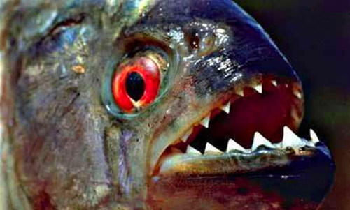 在原产地亚马逊河流域,成群的“食人鱼”常将误入水中的动物在短时间内吃得只剩白骨,甚至将误入水中的人吃掉。巴西人称其为“皮拉尼亚”,意思是“割破皮肤的”,印第安人常将其牙齿当小刀来用。在中国,“食人鱼”咬伤饲养人员和养殖爱好者的情况也时有发生。