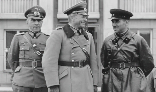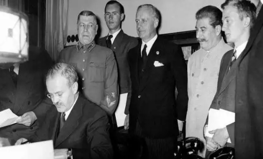 1939年8月23日夜晚,德国外交部长里宾特洛甫与苏联外长莫洛托夫于莫斯科签订《苏德互不侵犯条约》以及《秘密议定书》,实际上双方划定了各自在东欧的势力范围。之后,苏联强迫波罗的海三国(立陶宛、拉脱维亚、爱沙尼亚)签署所谓的互助条约,并在1940年将其三国彻底吞并。