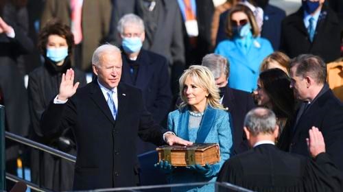 拜登就任美国总统宣誓仪式由美国联邦最高法院首席大法官罗伯茨主持,拜登在罗伯茨带领下念出就职誓言。拜登宣誓就职时使用一本其家庭珍藏的圣经,他于2009年和2013年宣誓就任副总统时也使用了这本圣经。