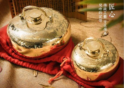 手炉有八角形、圆形、方形、腰形、花篮形、南瓜形等,大部分是由紫铜、黄铜、白铜制成,也有少量瓷器制品。在手炉制作工艺中,最吸引人的当数花纹纷繁的炉盖。作为散热区,镂空雕刻的炉盖有五蝶捧寿、梅兰竹菊、喜鹊绕梅等众多纹形,跟炉身的福禄寿喜、花鸟虫鱼、人物山水等花纹相得益彰,从一个侧面反映了传统民俗文化的博大精深。
